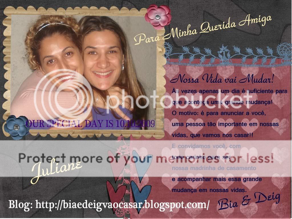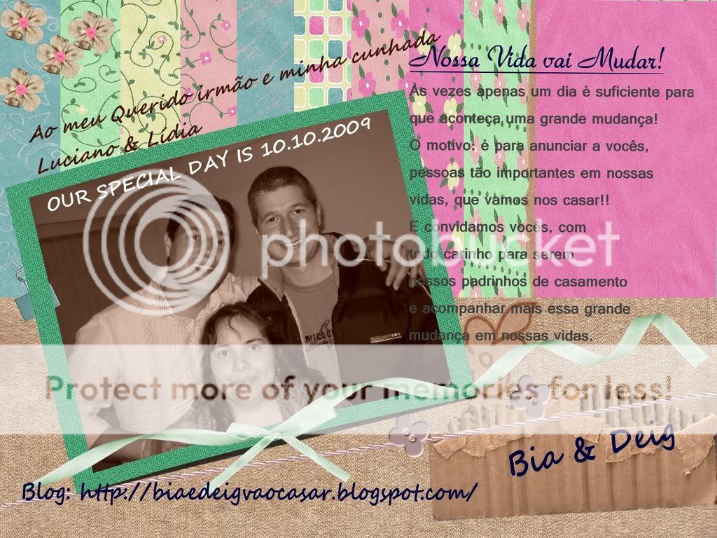 Queremos que vocês, pessoas tão importantes, que acompanharam tantas mudanças, físicas, sentimentais, profissionais, cor de cabelo, carro, nariz... aceitem acompanhar mais essa grande mudança em nossas vidas. Queremos que façam parte viva desse momento mais que especial, dessa mudança tão grandiosa, onde passaremos a ser um só por toda a vida.Escolhemos vocês por serem pessoas queridas que sempre estiveram ao nosso lado, compartilhando sorrisos, nossos sonhos e nossas lágrimas... Para compartilhar mais este momento...